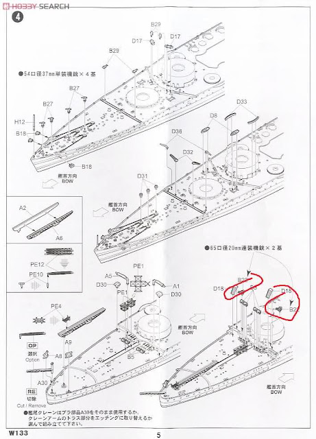 Al centro della nave vi erano i due grandi fumaioli ravvicinati tra loro, con quello prodiero che aveva come propaggine la plancetta di direzione del tiro delle mitragliere. L'albero prodiero più alto era unito al torrione da quattro passerelle, una delle quali serviva da stazione segnali. L'albero poppiero, più basso, sorgeva da una struttura a poppavia dei fumaioli la quale accoglieva il posto di comando poppiero e i proiettori. A poppa estrema era sistemata una catapulta orientabile, per il lancio di tre aerei che in origine erano dei biplani da ricognizione IMAM RO 43 a motore stellare, idrovolanti a scarpone, cioè dotati di un grosso galleggiante centrale e di due più piccoli sotto le ali più alti di quello centrale. Al decollo e in ammaraggio l'aereo si teneva in equilibrio su quello centrale, mentre, da fermo, in acqua, rimaneva leggermente sbandato poggiando su uno dei galleggianti laterali. Successivamente due dei RO 43 vennero sostituiti da caccia Reggiane Re 2.000.