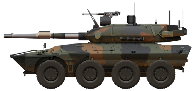 The Centauro II MGS 120/105 is an armored truck fighter produced by the CIO, Consorzio Iveco Oto Melara, and delivered to the Italian Army under the name Centauro II. It is the direct evolution of the Centauro, the world's first 8x8 armoured truck driver. The new version has been completely redesigned to withstand improvised explosive ordnance (IED), the hull is in high-strength monocoque ballistic steel with differentiated geometry depending on the section. The vehicle has a V-shaped bottom and has no accentuated wheel arches and mudguards to help dissipate the energy of any explosive device. In addition, it is about 300 kilograms lighter.