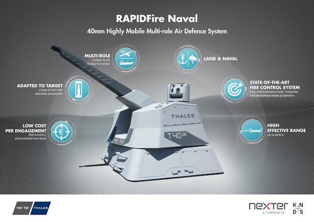 Il cannone a turo rapido “RAPIDFireNaval” è costituito da una torretta telecomandata armata con il CTAI 40 mm Cased Telescoped Armament System (CTAS) stabilizzato che è stato qualificato da Francia e Regno Unito per applicazioni terrestri ed è in produzione dall'inizio del 2016.
