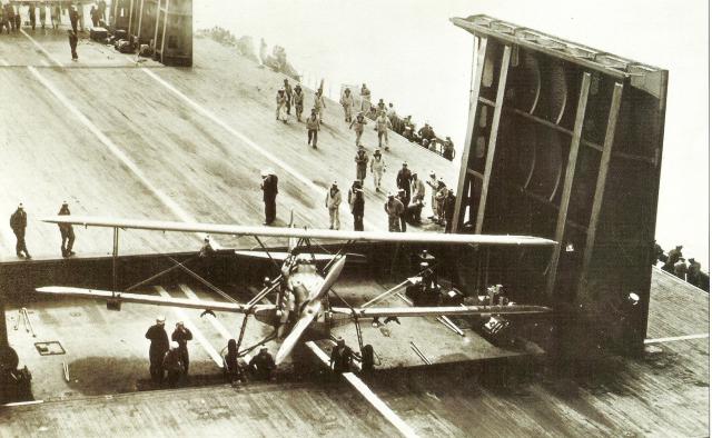 A differenza della US Navy e della Royal Navy, la Marine Nationale non affrettò la modifica della Béarn: dal contratto, firmato il 4 agosto 1923, alla messa in servizio, il 1° maggio 1928, passarono cinque anni durante i quali la Marina francese si accontentò di pochi idrovolanti. Infine il 3 maggio 1928, alcuni bombardieri biplani leggeri Levasseur PL.4, il primo aereo francese costruito in serie per essere imbarcato su di una portaerei, atterrarono su Béarn prima di iniziare manovre congiunte con l' esercito francese.