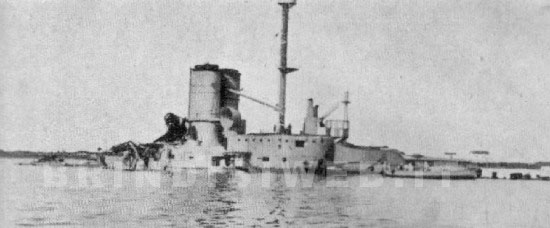“”"Nel fumo densosi distinse per un momento la massa d'acciaio della torre poppiera dei cannoni da 305 mm, che lanciata in aria dalla forza dell'eplosione fino a metà della colonna, ricadde poi violentemente in mare, sul fianco sinistro della nave. Pochi momenti dopo, dissipato il nembo del fumo, lo scafo della B.Brin fu veduto appoggiare senza sbandamento sul fondo di dieci metri e scendere ancora lentamente, formandosi un letto nel fango molle. Mentre la prora poco danneggiata si nascondeva sotto l'acqua che arrivava a lambire i cannoni da 152 della batteria, la parte poppiera completamente sommersa appariva sconvolta e ridotta ad un ammasso di rottami. Caduto il fumaiolo e l'albero di poppa, si erge ancora dritto e verticale l'albero di trinchetto”””.