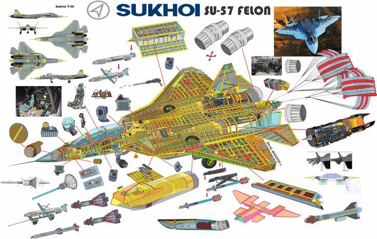 Il Su-57 è un aereo da combattimento multiruolo di quinta generazione e il primo aereo stealth operativo per le forze armate russe. Oltre alla furtività, il caccia enfatizza la super-manovrabilità in tutti gli assi degli aeromobili, i capaci vani di carico interno per la versatilità multiruolo e i sistemi di sensori avanzati come il radar attivo phased-array, nonché l'integrazione di questi sistemi per ottenere alti livelli di automazione.