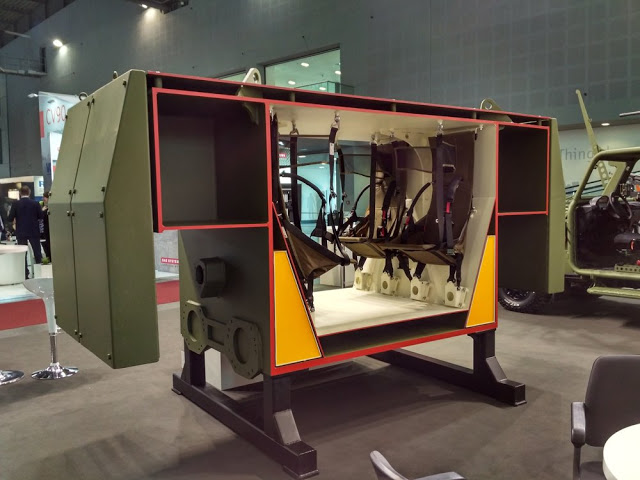 Il guidatore si trova sul lato anteriore sinistro dello scafo ed è dotato di tre periscopi, uno dei quali può essere sostituito con un'alternativa per la visione notturna. Il compartimento dell'equipaggio posteriore è progettato come uno spazio neutrale per la missione con l'incorporazione di binari a C e uno schema di punti di fissaggio universali sulle pareti e sul pavimento. Ciò fornisce una configurazione flessibile per tutte le apparecchiature specifiche della missione. Una grande rampa posteriore a comando elettrico consente un rapido ingresso / uscita degli smontaggi.